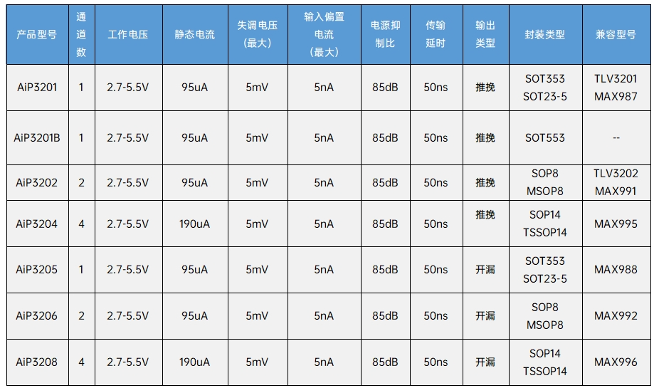 【Product Promotion】50ns Delay Micro-Power Differential Comparators — AiP3201/2/4/5/6/8